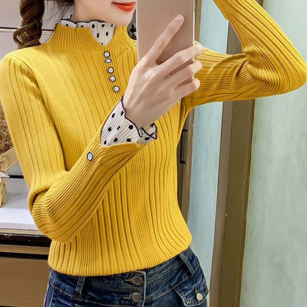 リブニット シフォン 韓国ファッション 着やせ 伸縮性 レイヤード風 大人可愛い プルオーバー お洒落 着回し