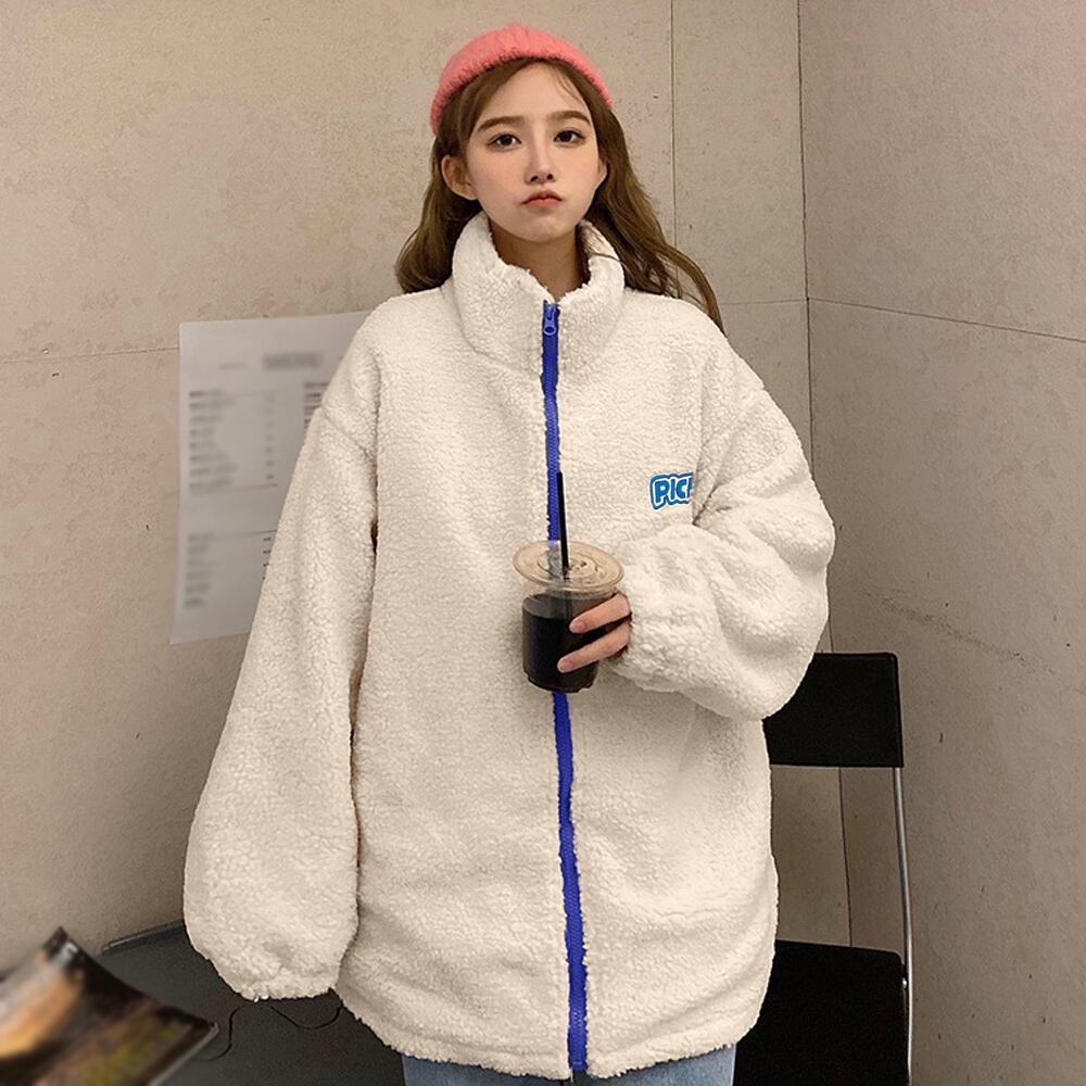 韓国 ジップアップ ファーコート 英字LOGO 秋冬コート ジャケット 暖かい オルチャン オシャレ カジュアル