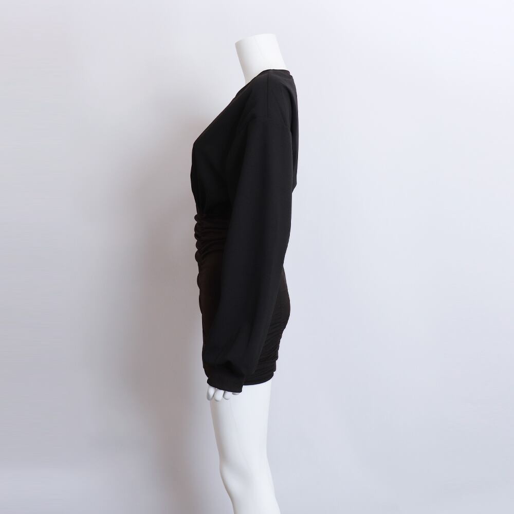 レディース 長袖ワンピース ショート丈 無地 ハイウエスト 細見え 大人 可愛い おしゃれ 着やせ オルチャン セクシー