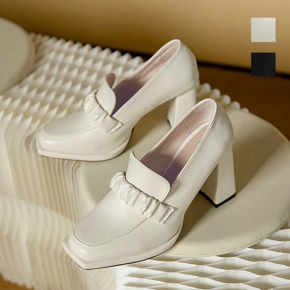 レディース おしゃれ ハイヒールパンプス 太ヒールローファー スクエアトゥ おじ靴 レトロ風 通勤靴 歩きやすいシューズ