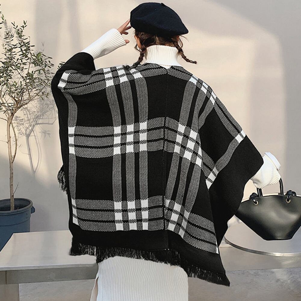 クラシカルなデザインで大人の女性向、上品で女性らしいチェック柄ケープ