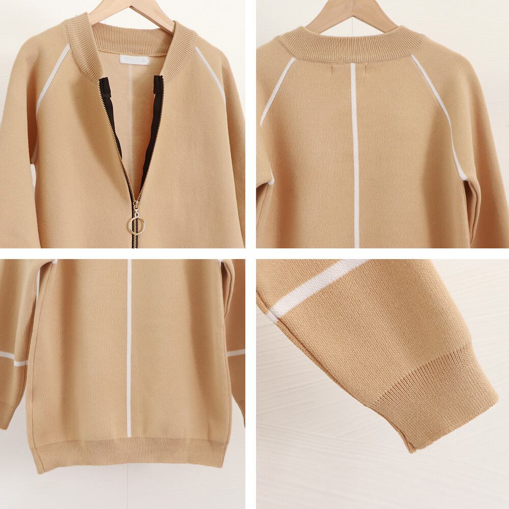 秋冬ジップパーカー 羽織り無地アウター 長袖ニットトップス