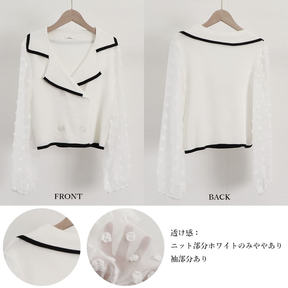 袖チュールニット春 スキッパーブラウス ショート丈トップス