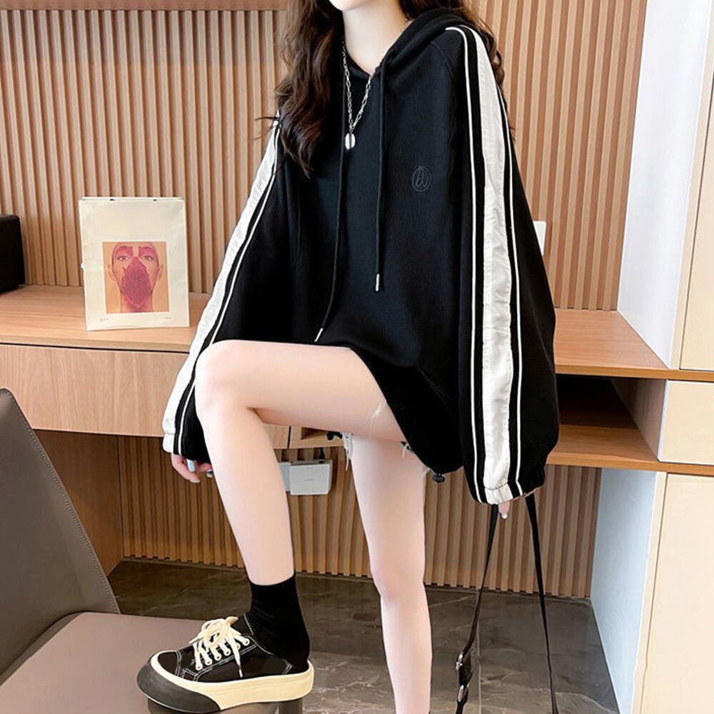 ゆったり 体型カバー ロゴフーディーパーカー 着やせ 韓国カジュアルトップス 薄手フード付きトレーナー 春秋長袖おしゃれ