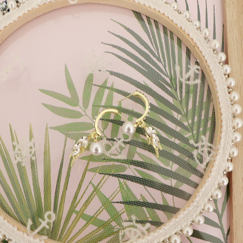 葉モチーフとフェイクパールで耳元を美しく魅せる2連フープピアス