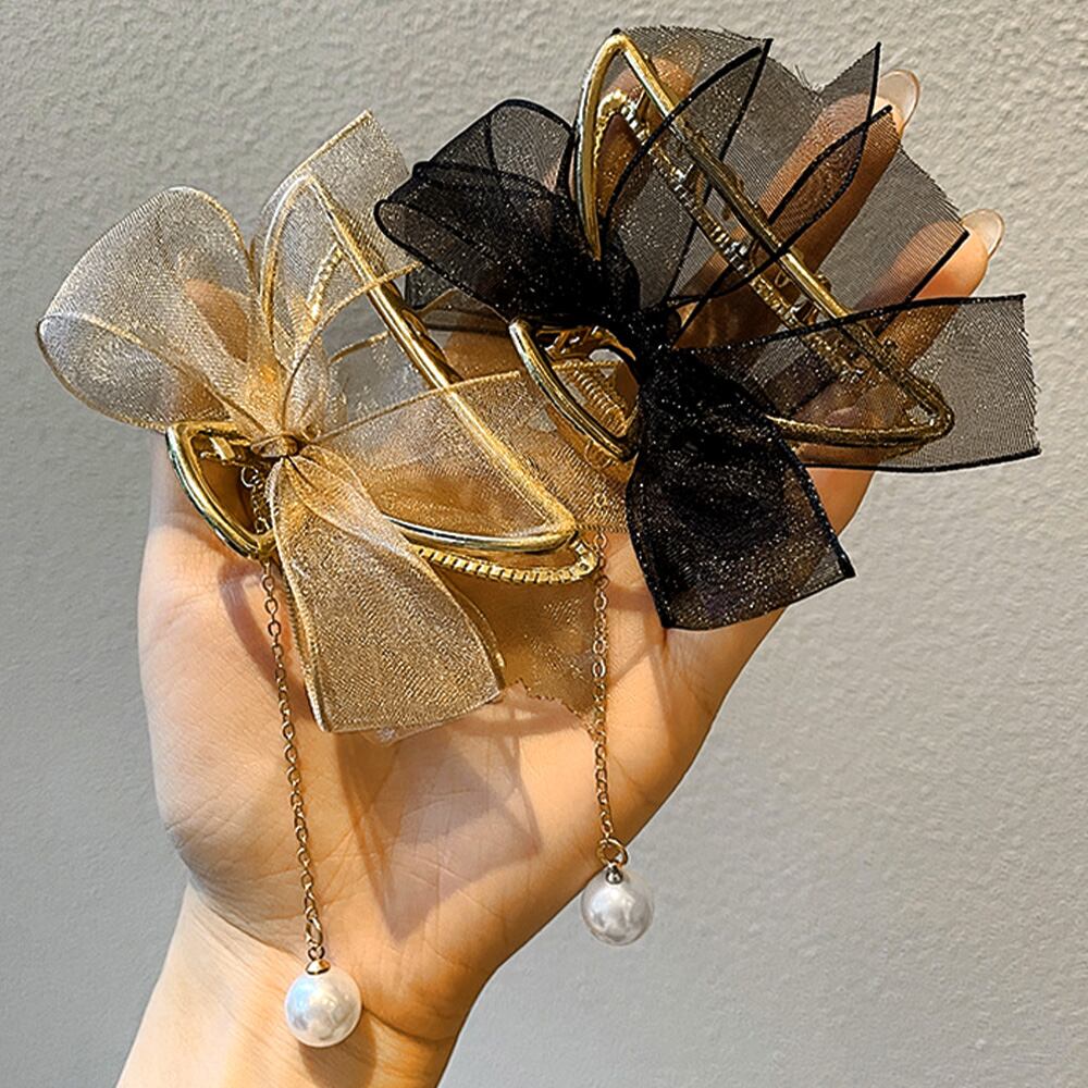 シアーリボンとパールで大人上品に決まるヘアクリップ