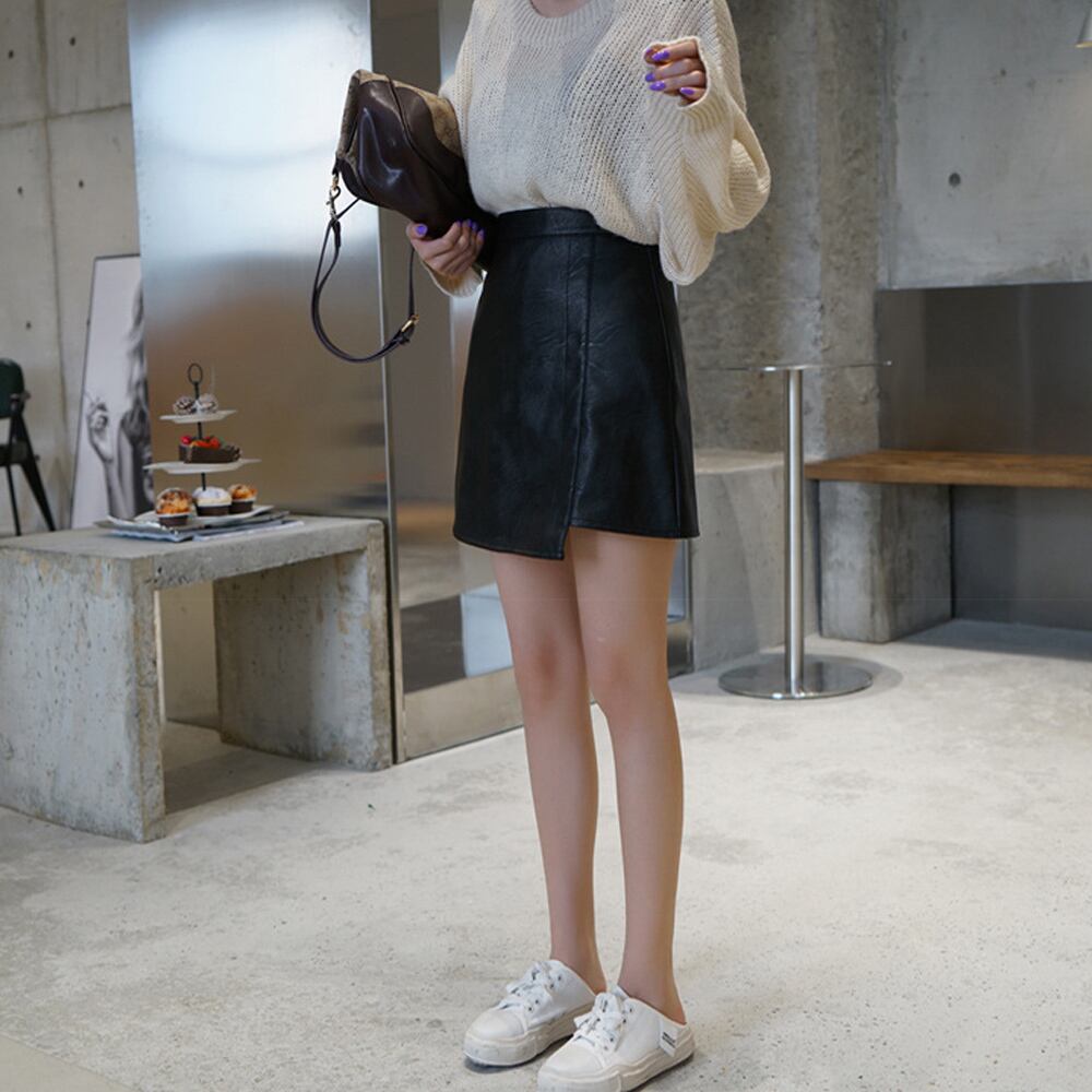 ハイウエスト ミニスカート カジュアル フェイクレザー ペンシルスカート お洒落 ボトムス 無地 膝上スカート