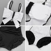 韓国風スイムウェア バイカラー バックシャン ワンピ風オールインワン水着 裾フリルオトナ女子モノキニ オルチャン 海水浴