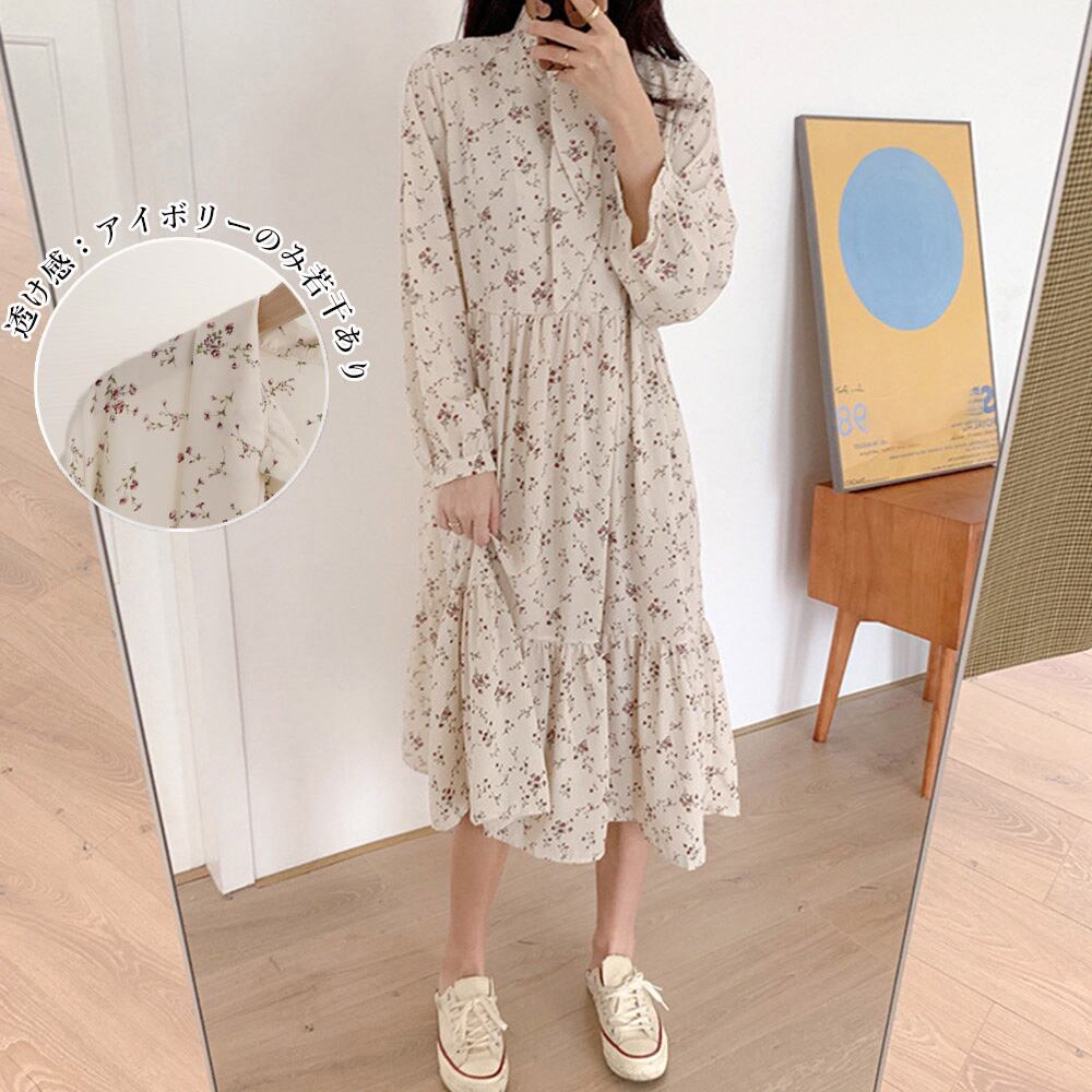 ティアードワンピ ウエストマーク Aラインワンピ 春夏秋 きれいめワンピ 長袖リゾートワンピース 体型カバーロングワンピ