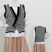 ニットジレ ボーダー柄 配色ベスト 秋冬