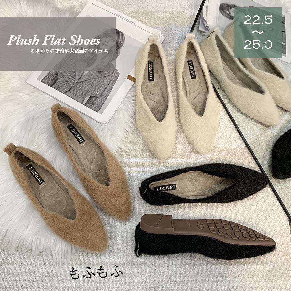 綿毛 ぺたんこ靴 もこもこ 温かい 大人 通勤 無地 可愛い ファー フラットシューズ 歩きやすい 韓国ファッション