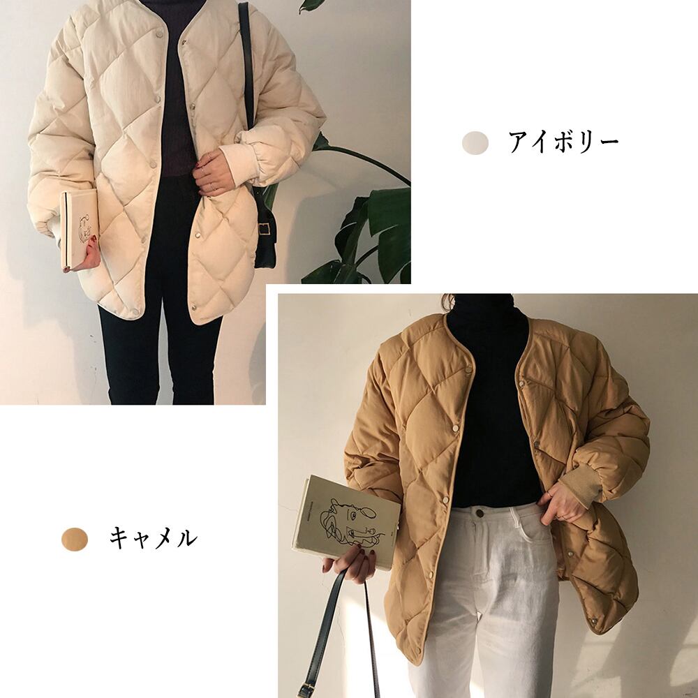 ノーカラーコート キルティングコート 韓国 ファッション ダウンコート ショート丈 秋冬 新作 アウター あったか 羽織