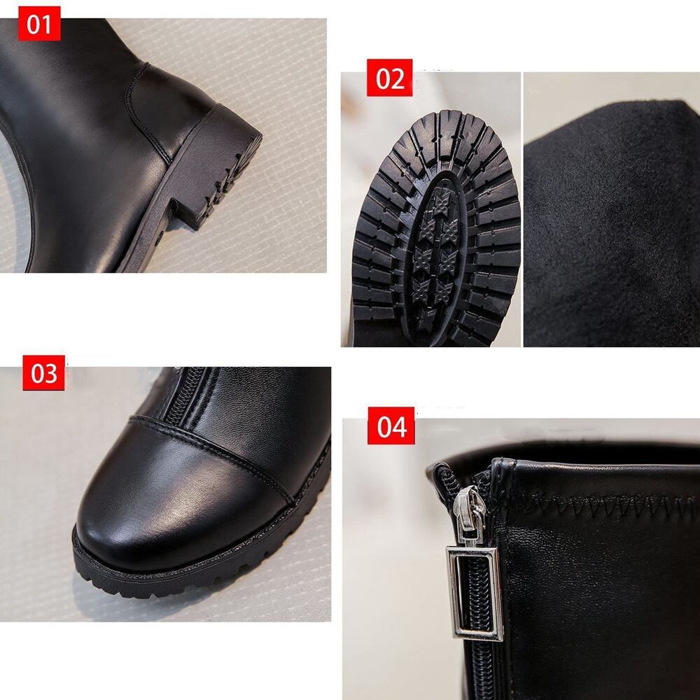 暖かい靴 ロングブーツ 韓国 ストレッチブーツ フロントジップ ブーツ チャンキーヒール冬靴 ローヒール 履きやすい