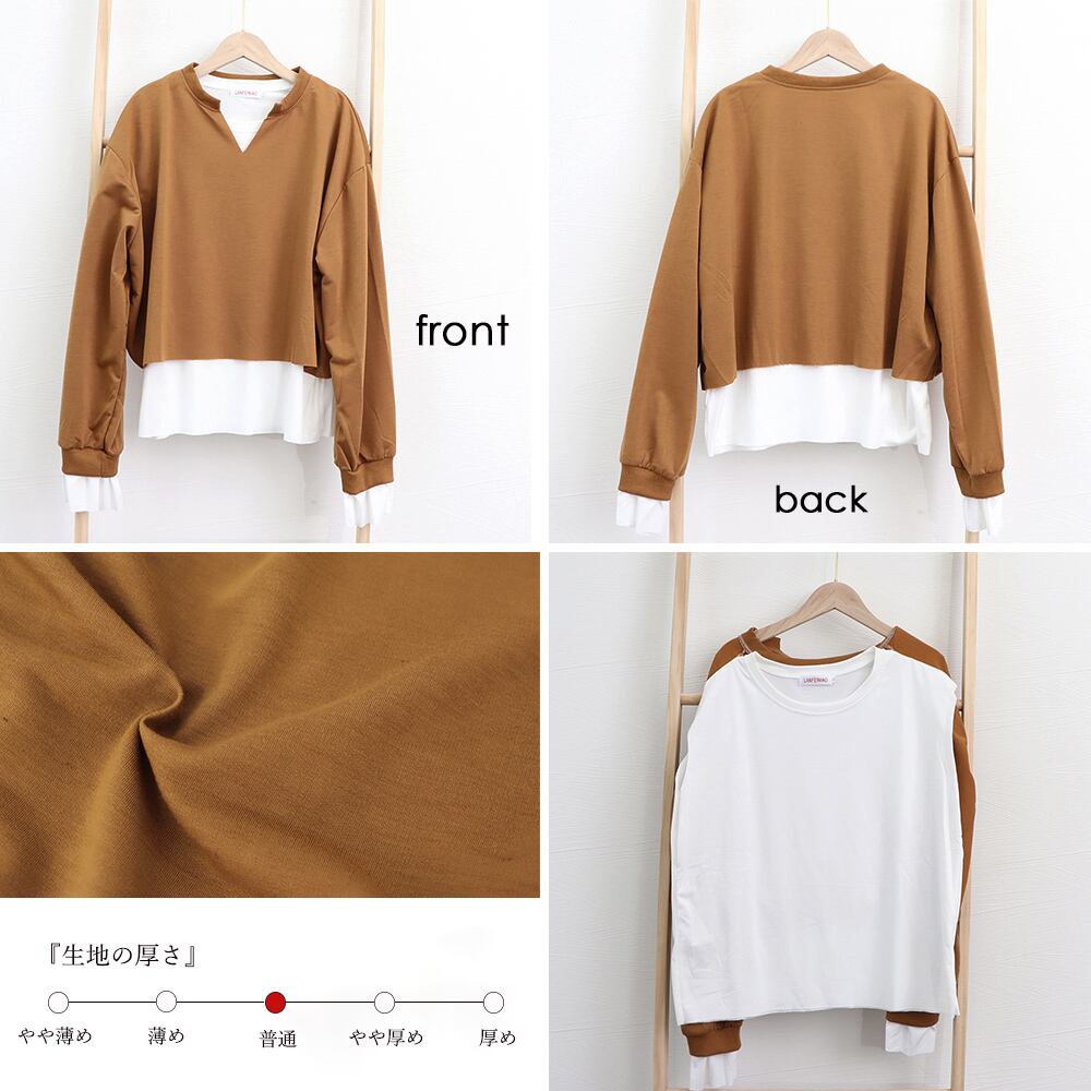 重ね着風 トレーナー レディース 長袖 プルオーバー 大人可愛い カットソー 着やせ 体型カバー 韓国風 シャツ 大人女子