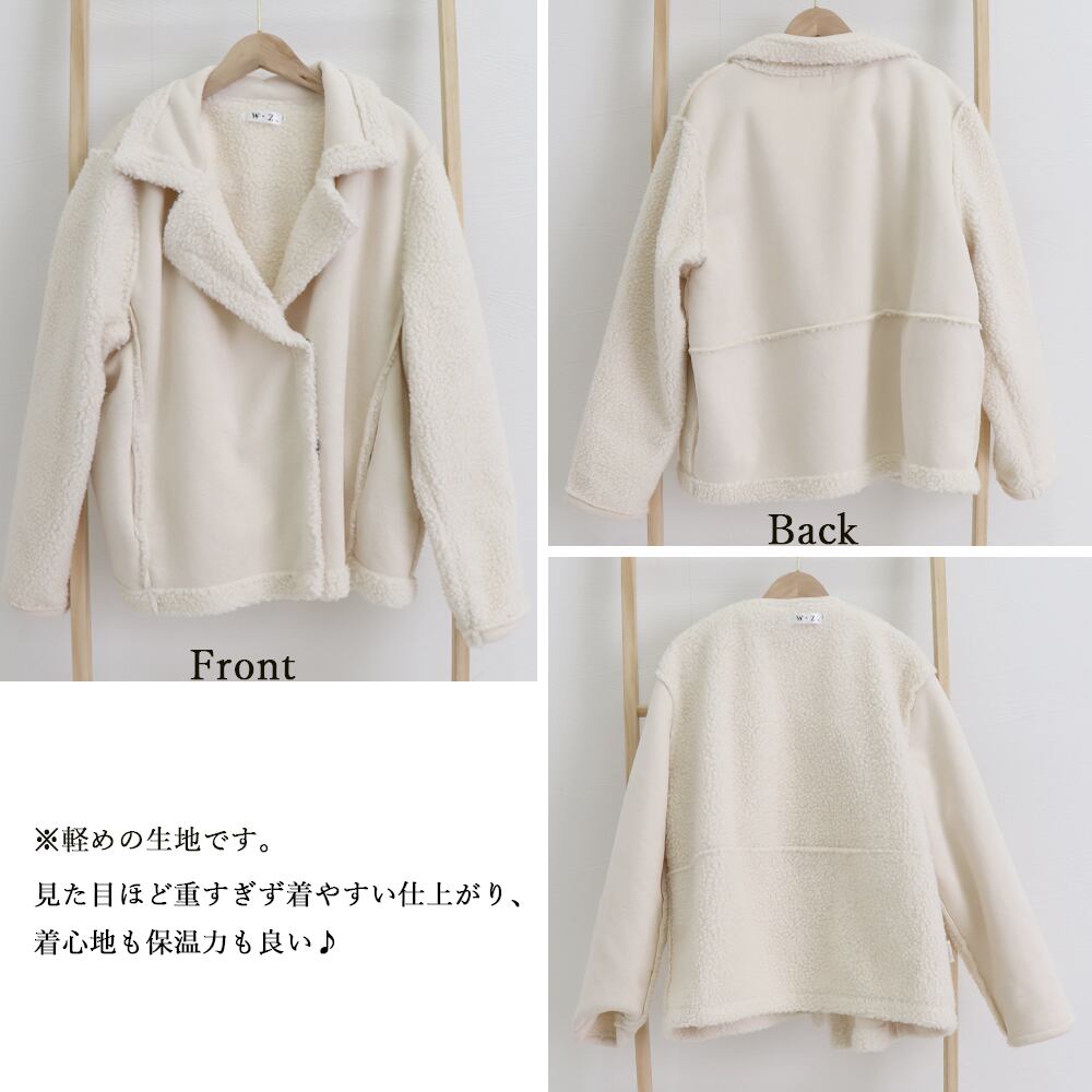 高級感のある、大人っぽさを増幅できるボア切替フェイクムートンジャケット