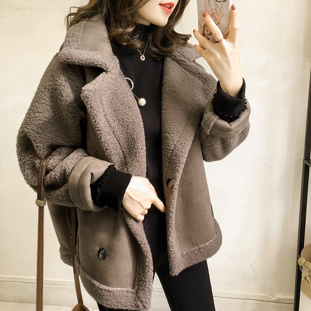 切替ムートンジャケット 韓国風 冬物