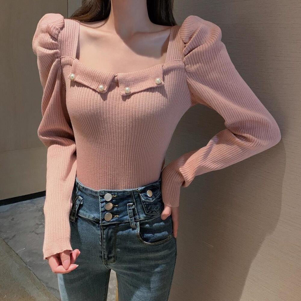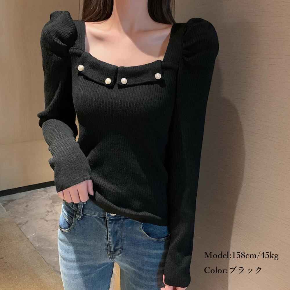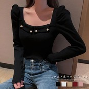 スクエアネック リブニット レディース デコルテ美人 プルオーバーセーター お洒落 ニットソー 長袖 ニットウエア
