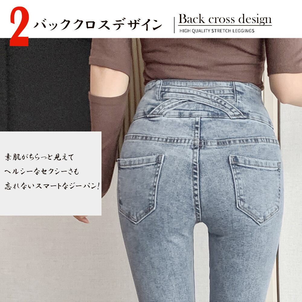 ストレッチ ジーンズ レディース 美脚 ジーパン おしゃれ 着やせ バッククロス デニム 細身 ハイライズ パンツ春夏秋冬