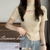 リブニット 着やせ セクシーニットソー 胸見せ 無地 ニットセーター ボトルネック 半袖 ニットトップス きれいめ