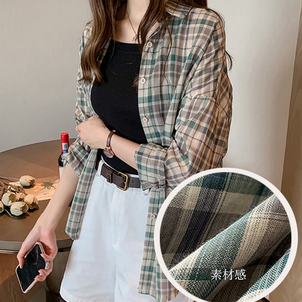 季節に問わず、オールシーズン使えるとても便利な長袖チェックシャツブラウスです