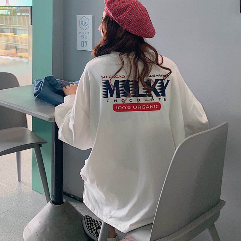 Tシャツ レディーストップス 長袖 カットソー 体型カバー プリント