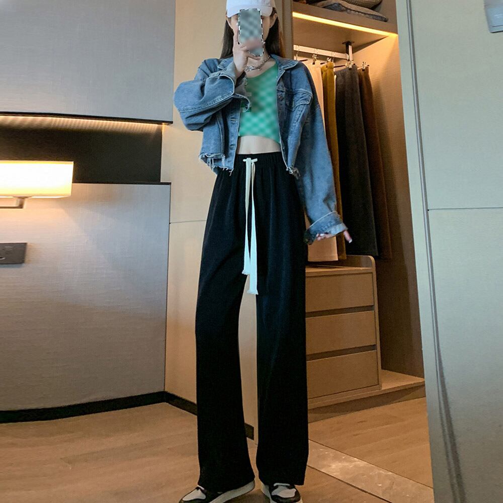 体型カバー 着やせボトムス無地 ストレートパンツ