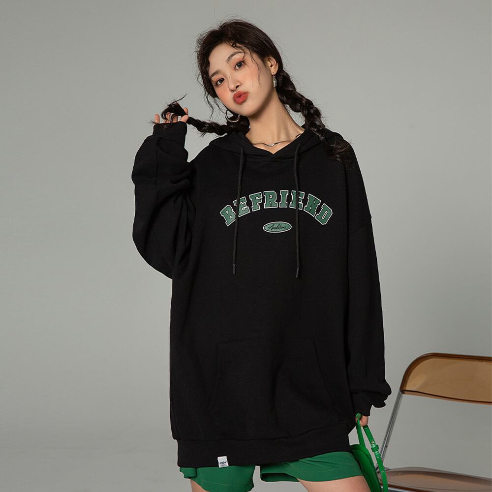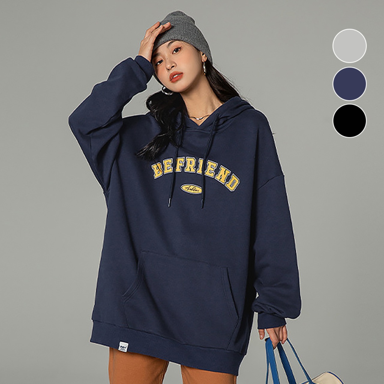 ベーシックなカラー展開、ゆったりとしたサイズ感の長袖パーカー。