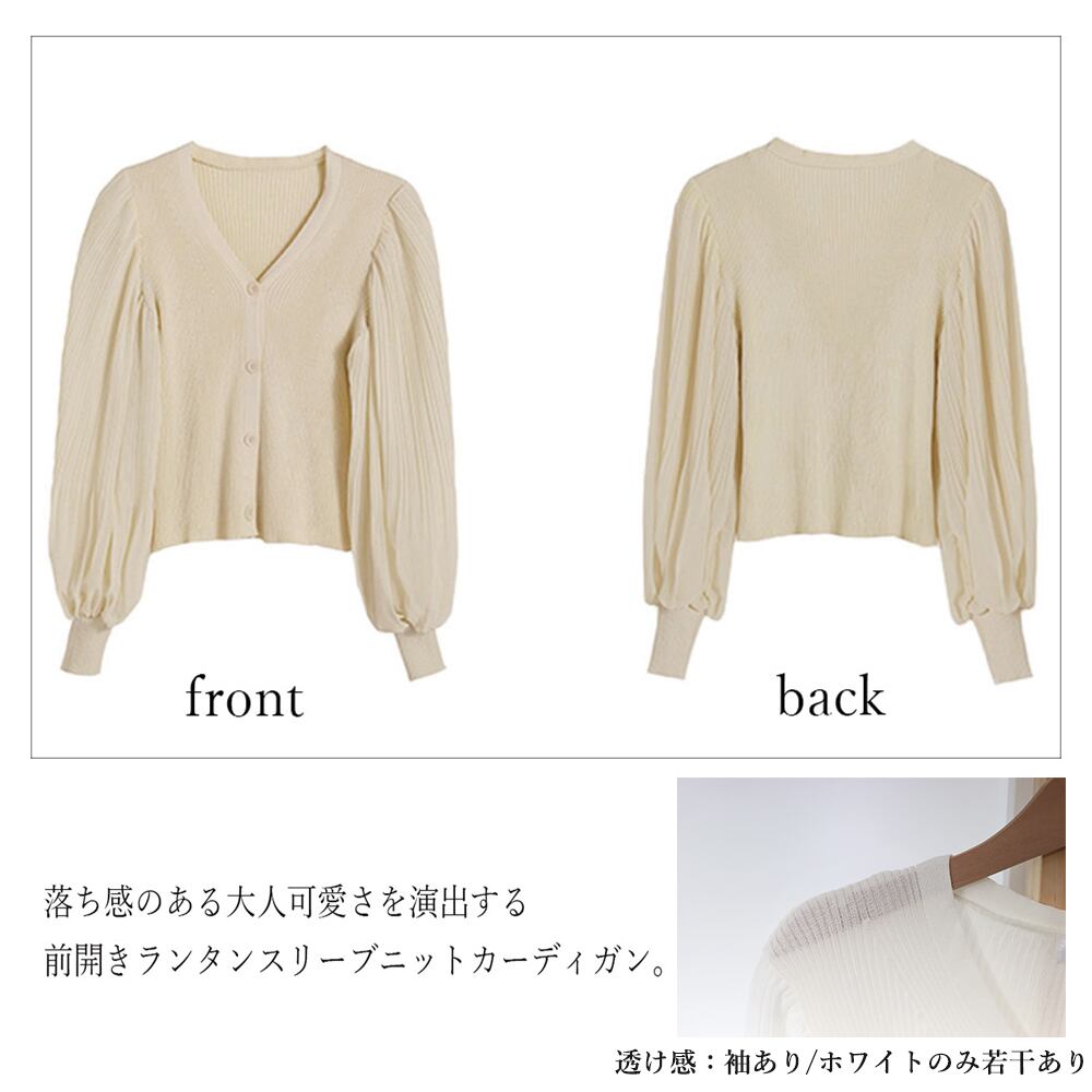 落ち感のある大人可愛さを演出する前開きランタンスリーブニットカーディガン。