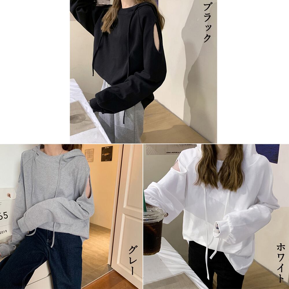 肩出し パーカー レディース トップス 薄手 プルオーバー 長袖 トレーナー