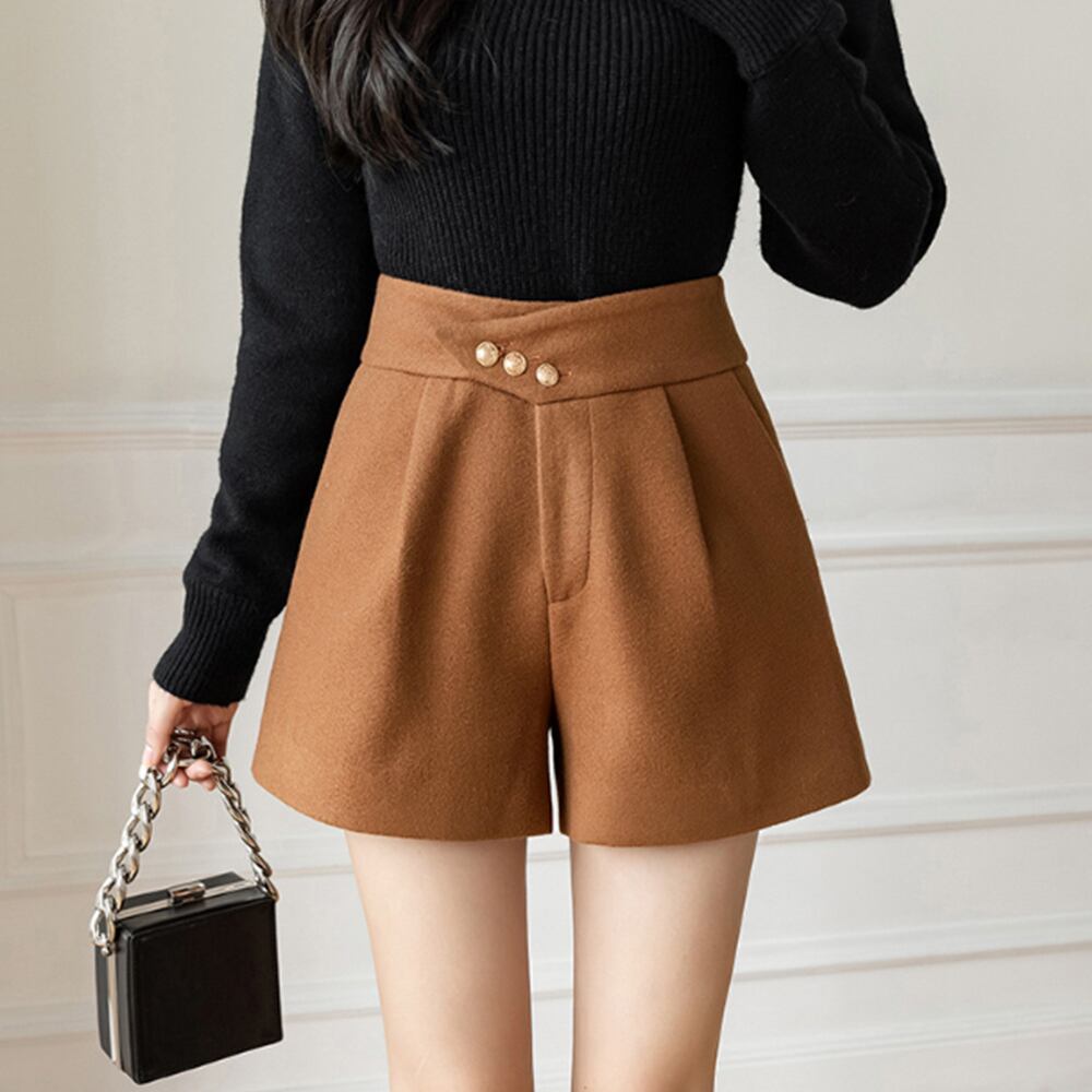 秋冬 ワイドショートパンツ Aライン 着やせ 韓国ファッション 美脚脚長 無地 ミニ丈ボトムス 大人 オフィスカジュアル