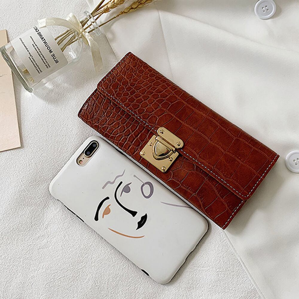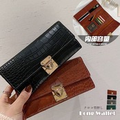 手触りが良くの特徴、上品なクロコ型押しデザインの三つ折り長財布