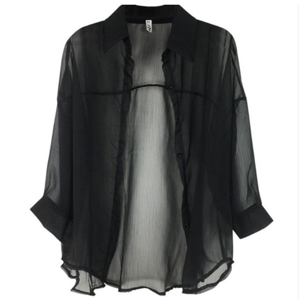 レディース シフォンカーディガン 薄手 シースルーシャツ ボリュームスリーブ 羽織 無地 韓国 透け感 ブラウス