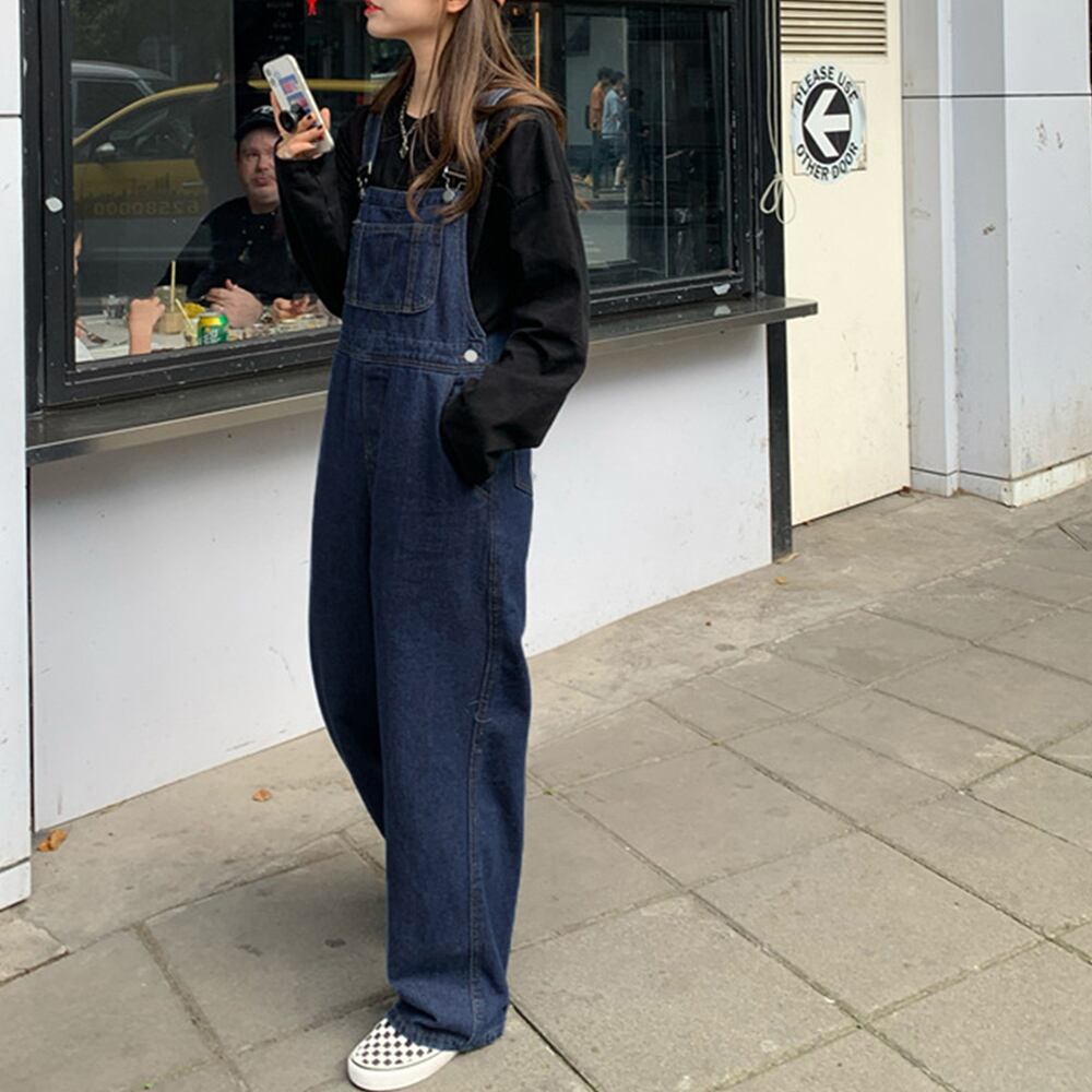 デニムサロペット レディース オーバーオール ハイウエスト オールシーズン