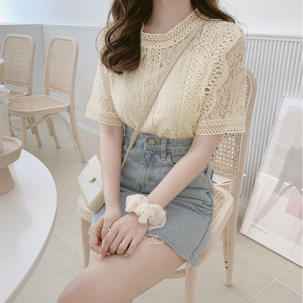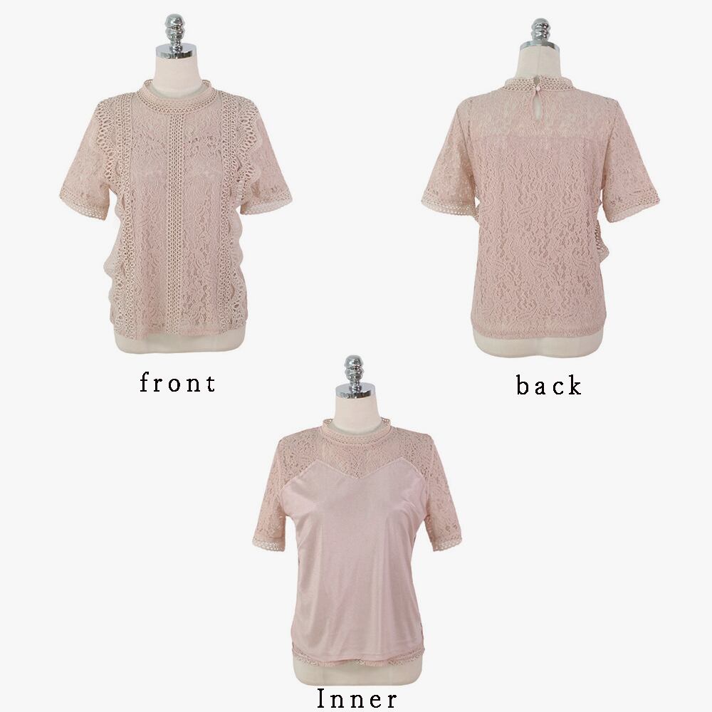 総レース ブラウス レディース 刺しゅうレース トップス フリル 半袖