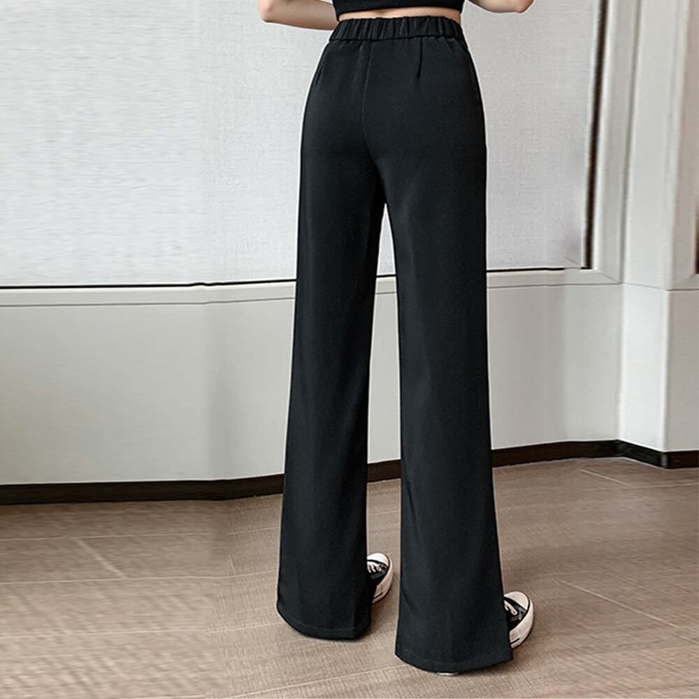 ハイウエスト レディース カジュアルパンツ スーツ素材 ボトムス ウエストバックゴム ストレート パンツ 無地 女性 パンツ 着やせ ズボン