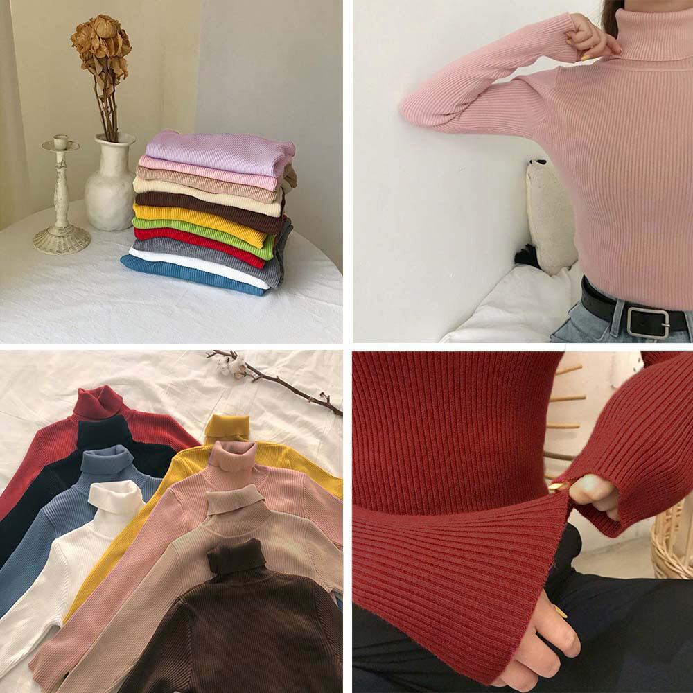 おしゃれ 長袖 ニットカットソー 着やせ ハイネック ニットプルオーバー 秋冬タイトニット 細身 インナートップス