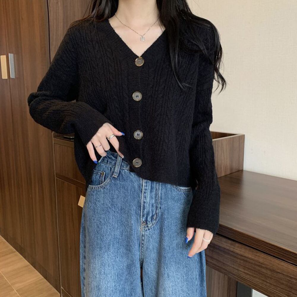 韓国風 長袖羽織り 着やせカーディガン ボタンニットトップ