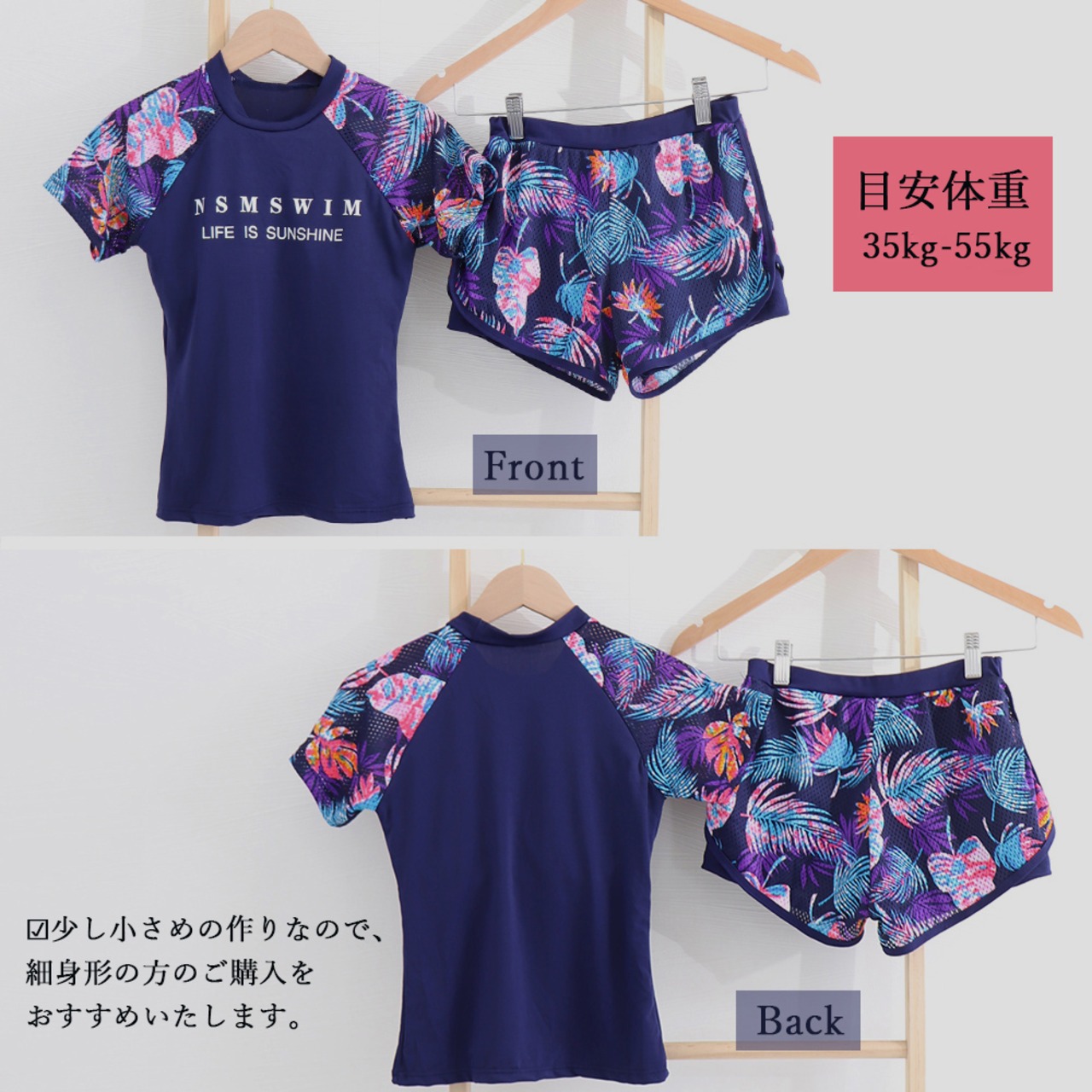新作 上下セット 大人用 フィットネス 水着 ラッシュガード ボタニカル柄 半袖 トップス ショートパンツ かわいい夏