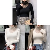 レースがスタイリングを大人可愛いらしく演出するタートルネックニットトップス