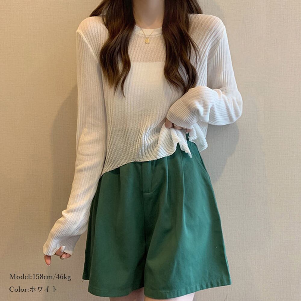 透け感 カットソー 長袖 涼しいトップ 冷房対策 ニット