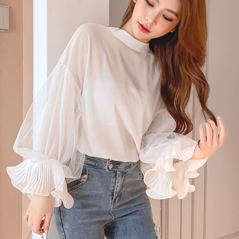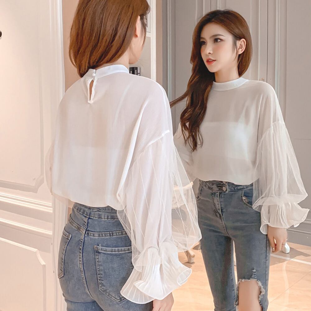 シフォンブラウス チューブトップ付き レディース フレアスリーブ 長袖ブラウス