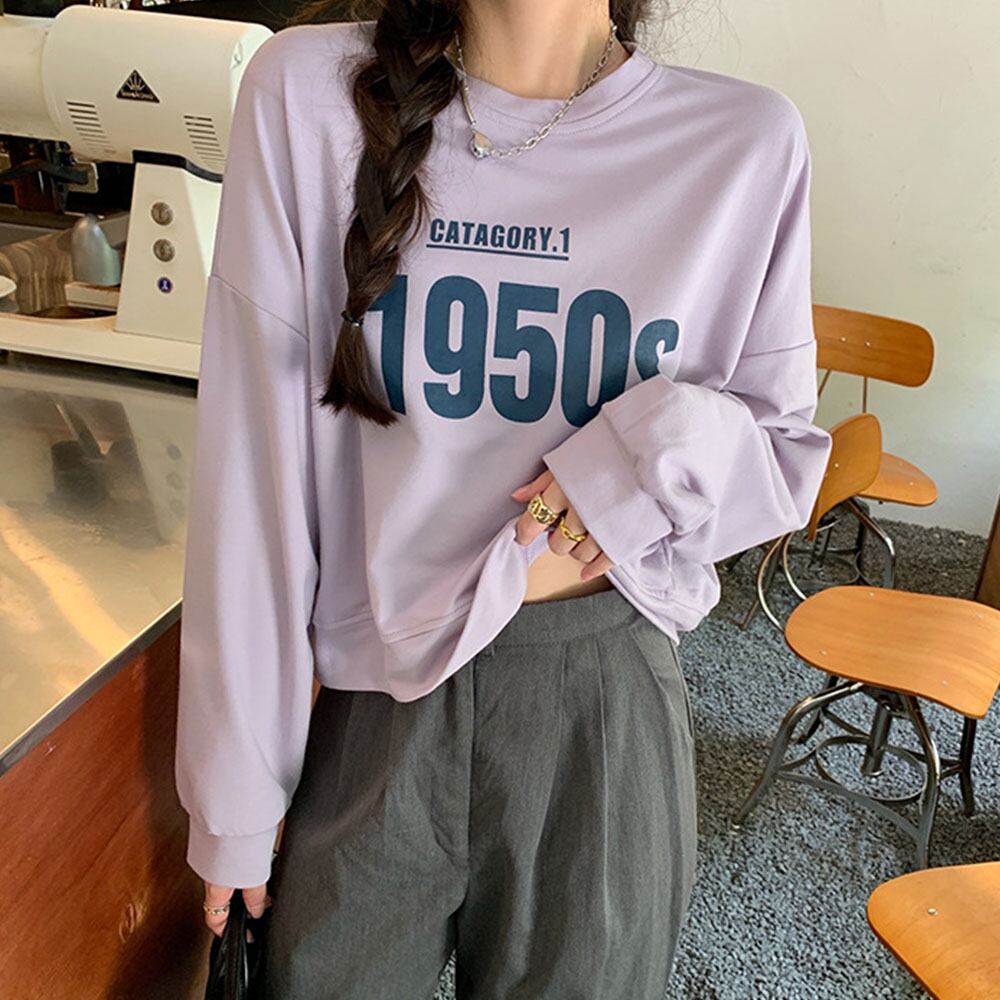 ロゴトップス オルチャン ショート丈 カジュアル 韓国ファッション クルーネック 着やせ