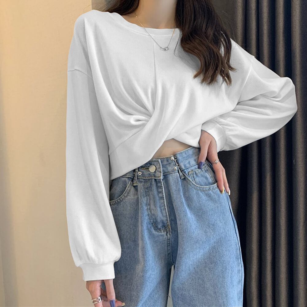 レディース 長袖 カジュアル フロントクロス ショートTシャツ 春秋冬 無地 セクシー ヒップホップ おしゃれ