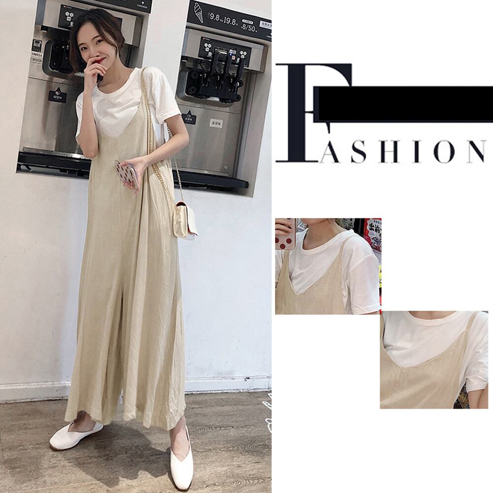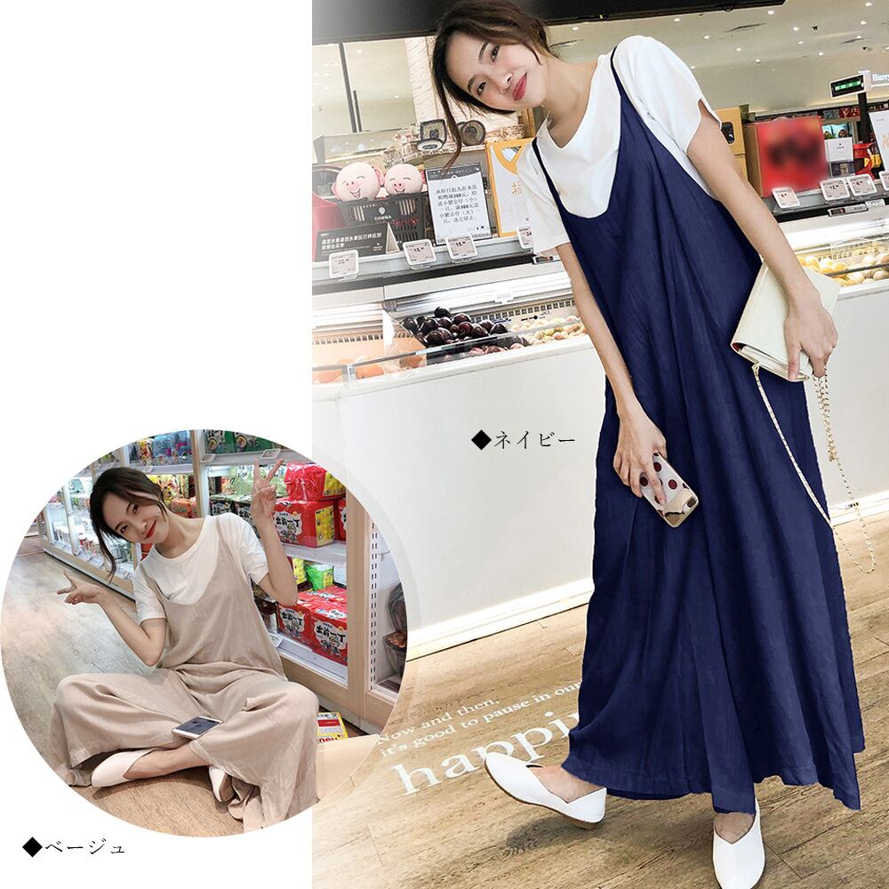綿麻風 大人可愛い オーバーオール 韓国 おしゃれ ワイドパンツ ロング丈 マキシ スカーチョ ガウチョ