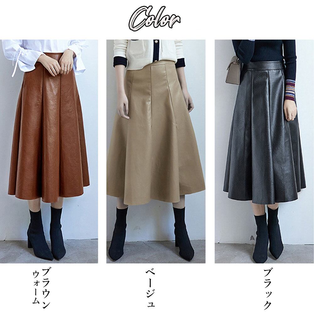 フェイクレザースカート レディース フレアスカート エコレザー ロングスカート