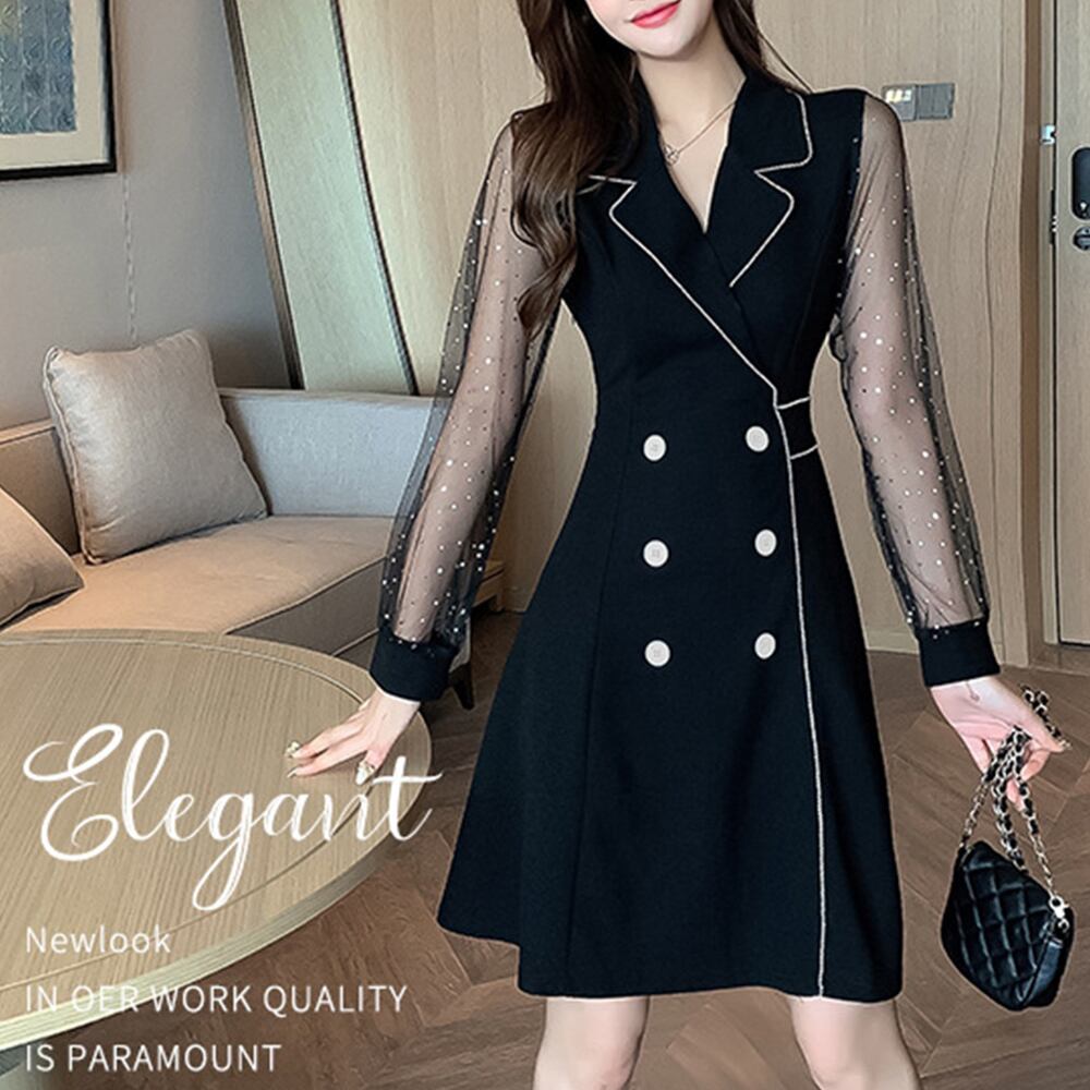 韓国風ワンピ 長袖 パイピングワンピ春 ワンピース 結婚式
