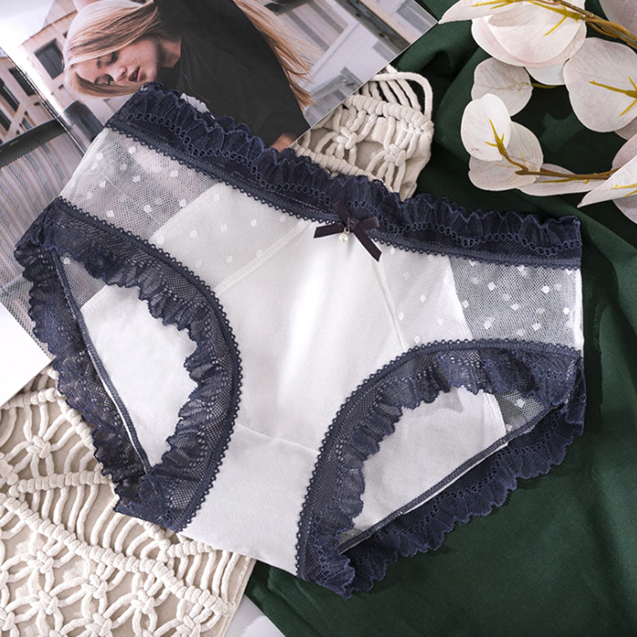 レース レギュラーショーツ 透け感 セクシー 配色レース スタンダードショーツ 響きにくい ランジェリーパンツ