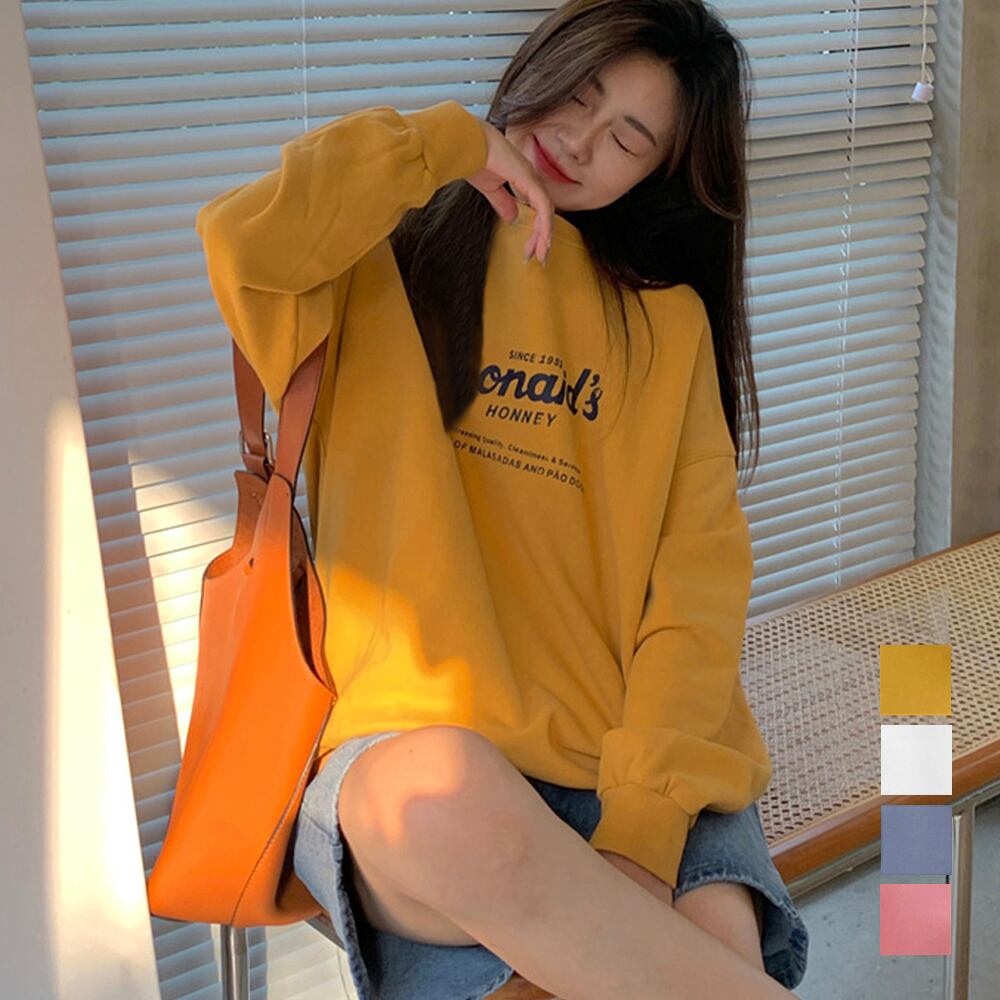 シンプル クルーネック プルオーバー 英字プリント 韓国ファッション スウェット風トップス ゆったり ラウンドネック春秋