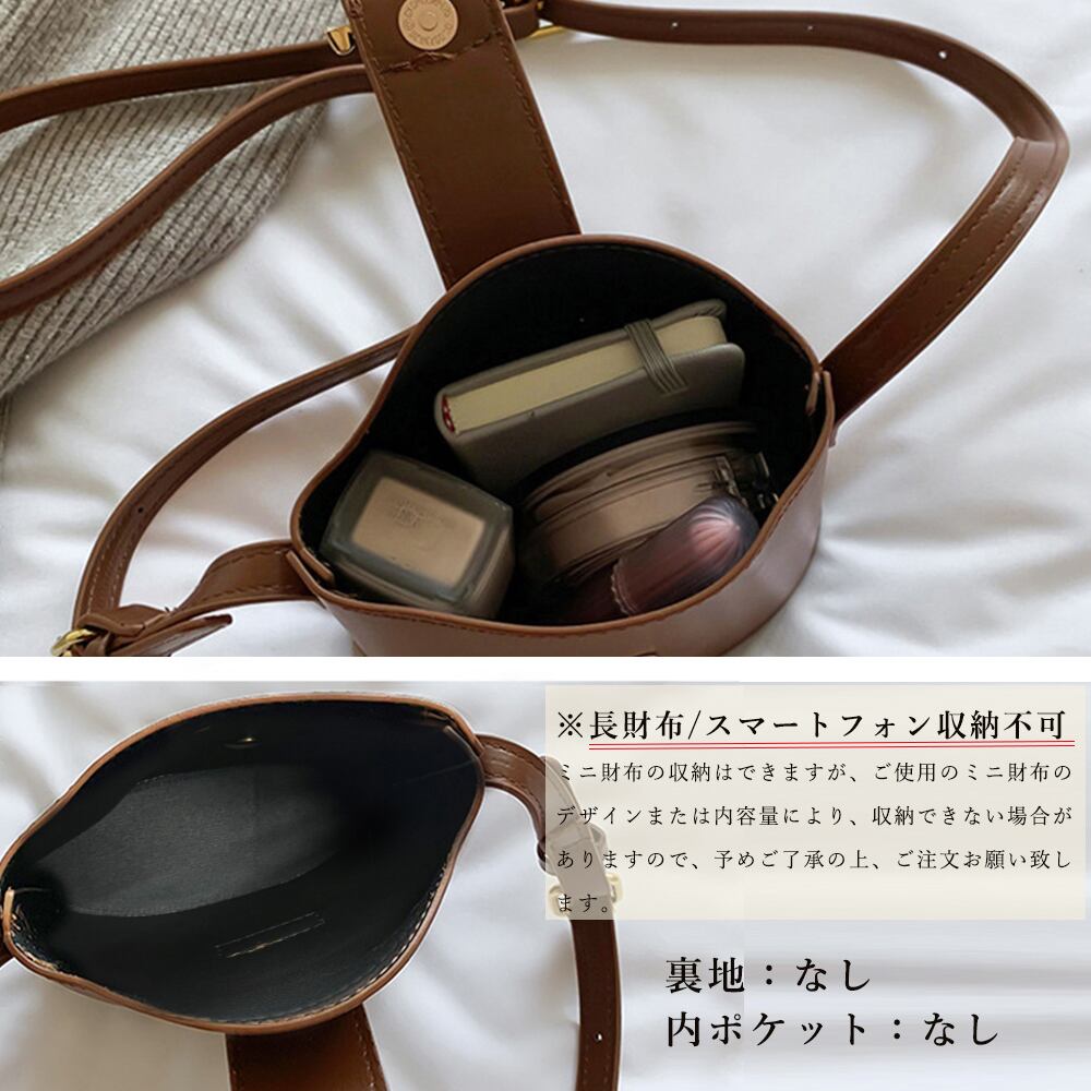おしゃれ 小さめ バケツバッグ PUレザー 斜めがけかばん フェイクレザー鞄 ベルト飾り コンパクト 手提げカバン 5色