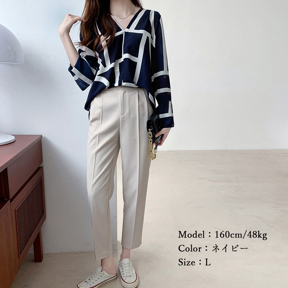 幾何学模様ブラウスレディースVネック長袖